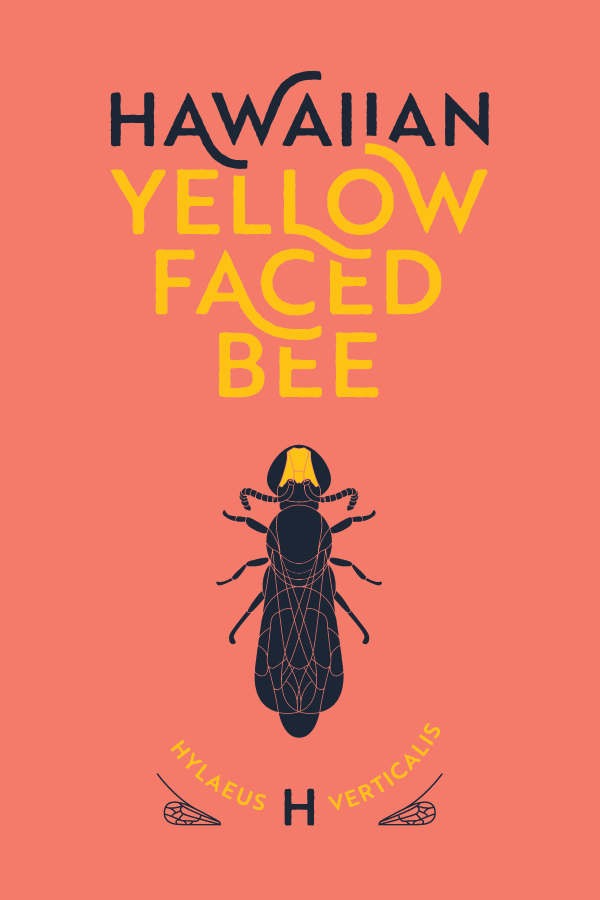 My husband, our 2.5 year old daughter, and I live on a small farm on Lookout Mountain in Northwest Georgia. We grow food for our own table and that of others in the community. In the three years that we've (primarily my husband, while I design) been farming, we've learned the importance of bees and have grown to appreciate them for the work they do. So much so, we plant specific flowers to attract and keep them around. Sadly, the Hawaiian Yellow-Faced Bee and the native Hawaiian plants that they pollinate are now endangered. They both need the other in order to survive. I was honored to design this poster of the Hawaiian Yellow-Faced Bee as I know firsthand the importance of them in our everyday lives everywhere. The intricacies in the tiny lines that this bee is made up of, the wing patterns and symmetry lent itself well to the line-art style that I went with. When it came to the type, I wanted to give some movement to the poster and in a way resemble the patterns that bees fly in.